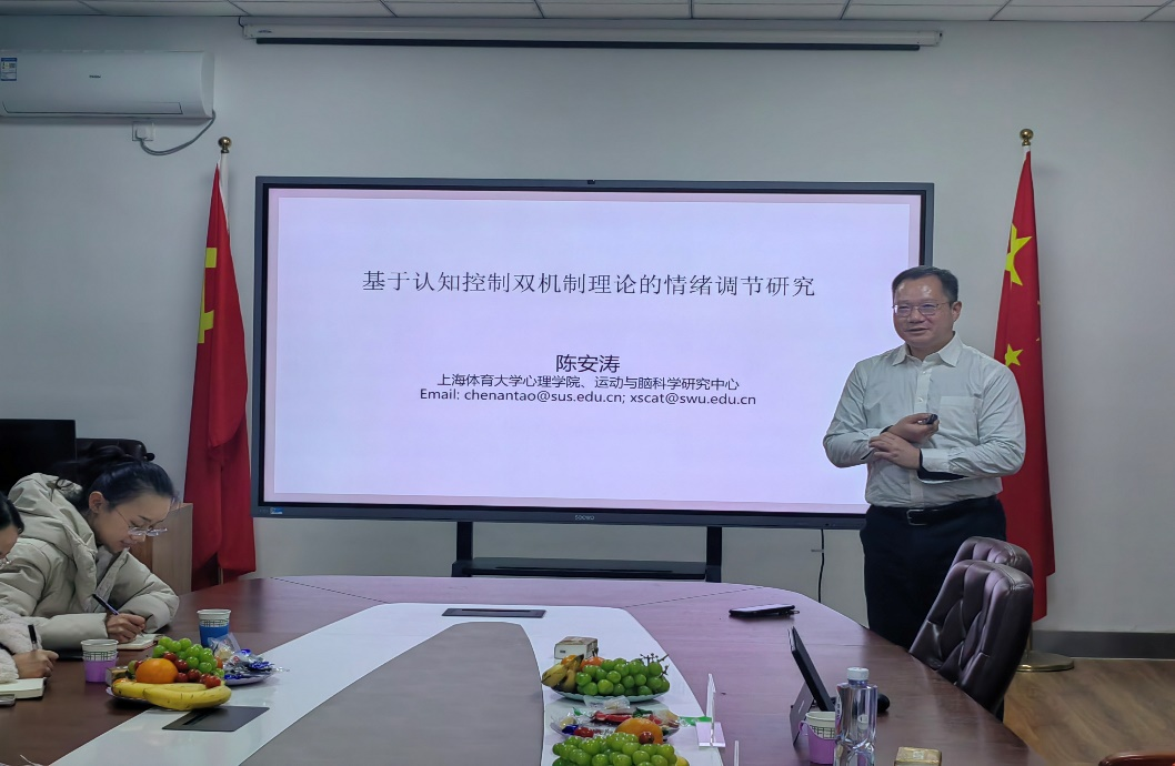 入选国家百千万人才工程,有突出贡献中青年专家、全国百篇优秀博士学位论文作者、教育部新世纪优秀人才、重庆市学术技术带头人、中国心理学会、中国认知科学学会、中国神经科学学会理事,上海体育大学beat365唯一官网入口陈安涛教授作题为《基于认知控制双机制理论的情绪调节研究》的学术报告,陈安涛教授从情绪调节的主要策略引入,重点介绍了近年来团队关于情绪调节的神经机制和认知机制的相关研究。