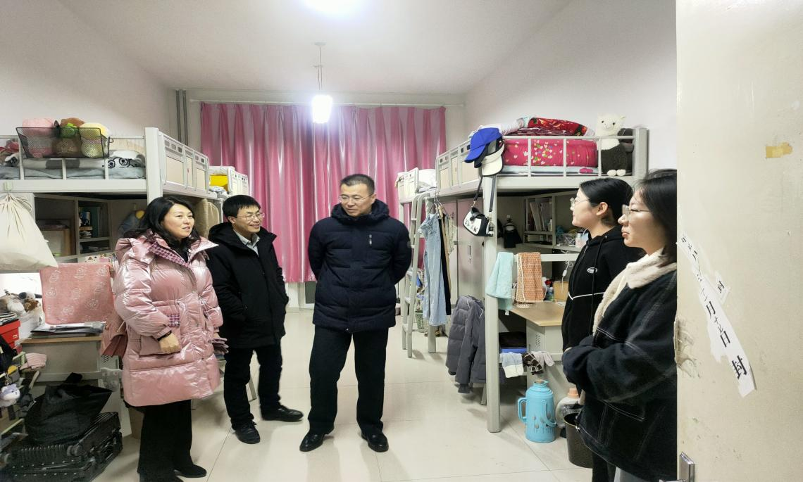 为了更好地关心假期留校学生,及时了解学生的思想状态和心理诉求,1月14日晚,beat365唯一官网入口党委书记侯友、党委副书记副院长张春林、副院长金童林、学就办主任张金钟一行深入宿舍楼走访看望假期留校同学,为他们送去了温暖和关怀。