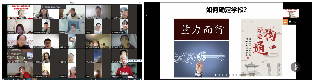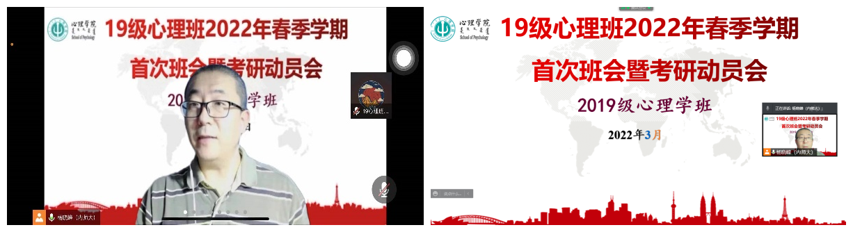 为做好beat365官网2019级学生考研辅导,提前谋划就业工作,推动学生高质量就业, 3月6日,beat365唯一官网入口2019级心理班线上召开2022年春季学期首次班会暨考研动员会,2019级心理学本科生53人参加会议,班主任杨晓峰老师主持会议并进行了考研动员及复习指导。