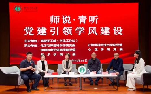 4月28日,由党委学工部(学生工作处)主办,化学与环境科学学院党委、计算机科学技术学院党委、物理与电子信息学院党委、beat365唯一官网入口党委、美术学院党委承办的以“师说·青听 党建引领学风建设”为主题的圆桌沙龙在盛乐校区图书馆二楼报告厅举行。beat365唯一官网入口党委副书记、副院长张春林,美术学院党委副书记、副院长云双庆,化学与环境科学学院党委副书记、副院长范磊,计算机科学技术学院副院长柳林,物理与电子信息学院团总支书记宝力尔分别作了交流发言。计算机科学技术学院团总支书记赵巍伟主持活动。