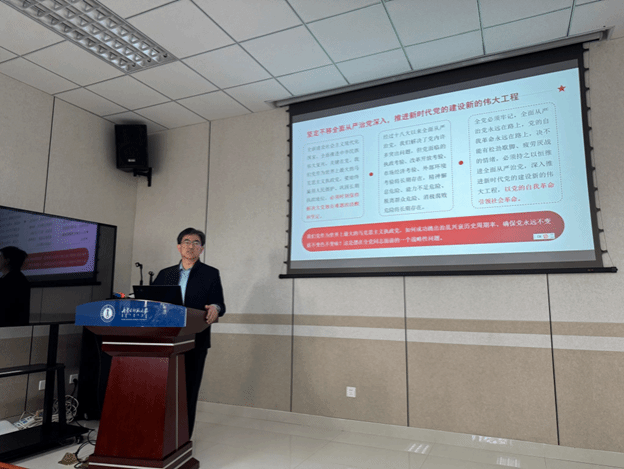 会议特邀beat365唯一官网入口中共党史与党建学院院长张瑞军作题为《学习习近平总书记关于加强党的作风建设的重要论述》的辅导讲座。