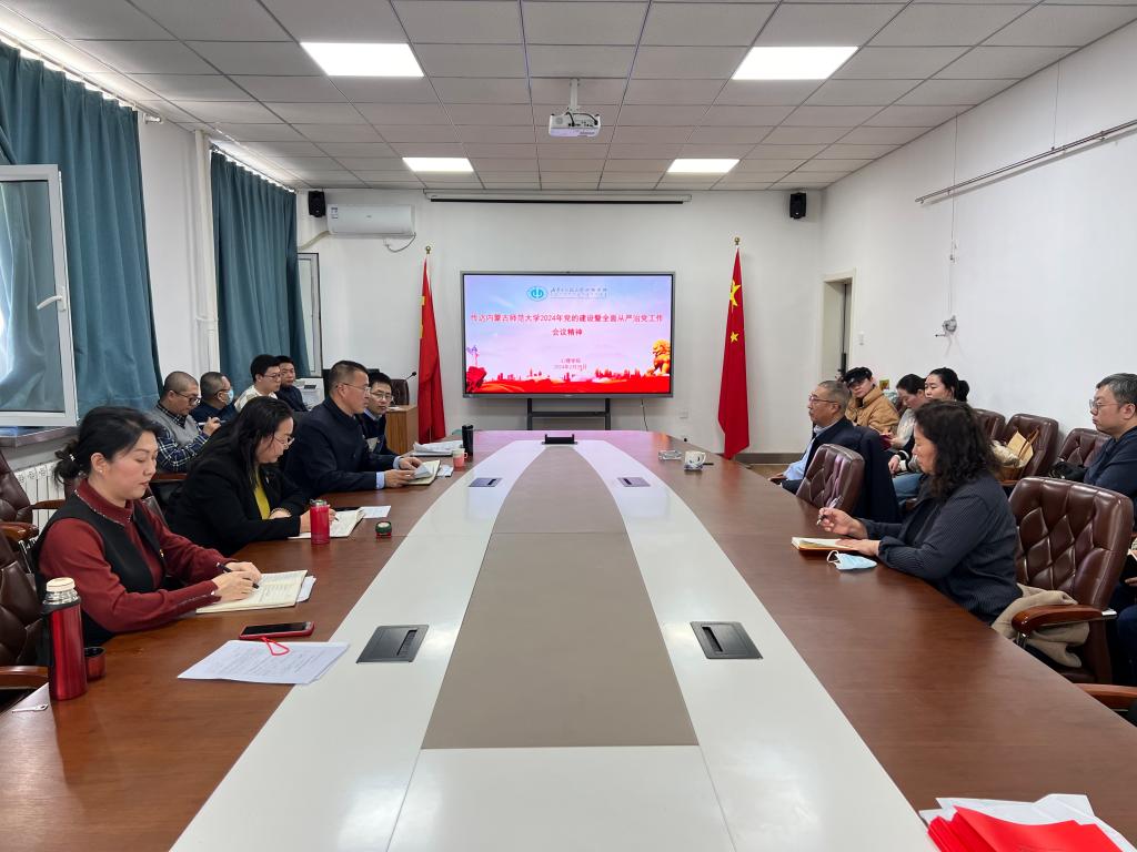 为认真贯彻落实学校2024年党的建设暨全面从严治党工作会议精神,引导全体教职工切实将思想、行动统一到校党委决策部署上来,推动党的建设、全面从严治党各项工作部署落细落地,为学校“双一流”建设营造风清气正的政治生态。2月29日下午,beat365唯一官网入口召开会议学习传达学校2024年党的建设暨全面从严治党工作会议精神。学院领导侯友、乌云特娜、张春林、金童林及全体教师参加会议。会议由学院党委书记侯友主持。
