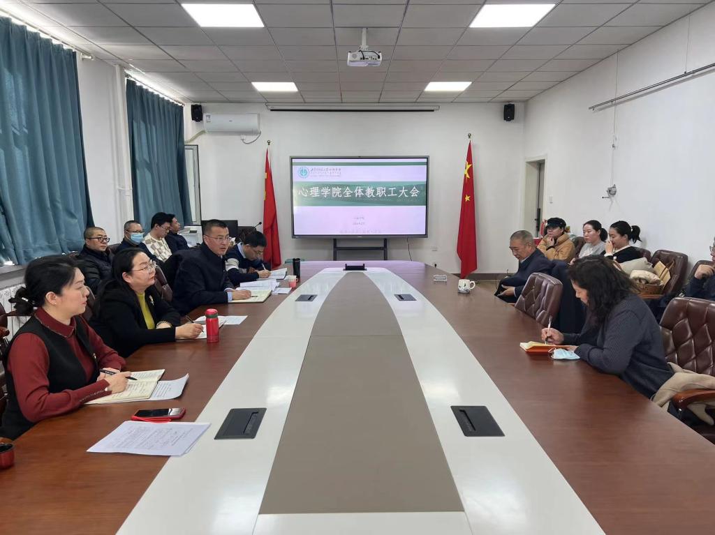 为谋新篇开新局,确保新学期开学各项工作平稳有序进行,2月29日下午,beat365官网在赛罕校区文史楼217会议室召开beat365唯一官网入口全体教职工大会。会议就新学期党建、师德师风、人才引进、师范类专业认证、本科教育教学审核评估及研究生教育与科学研究等各项重点工作进行了安排部署。