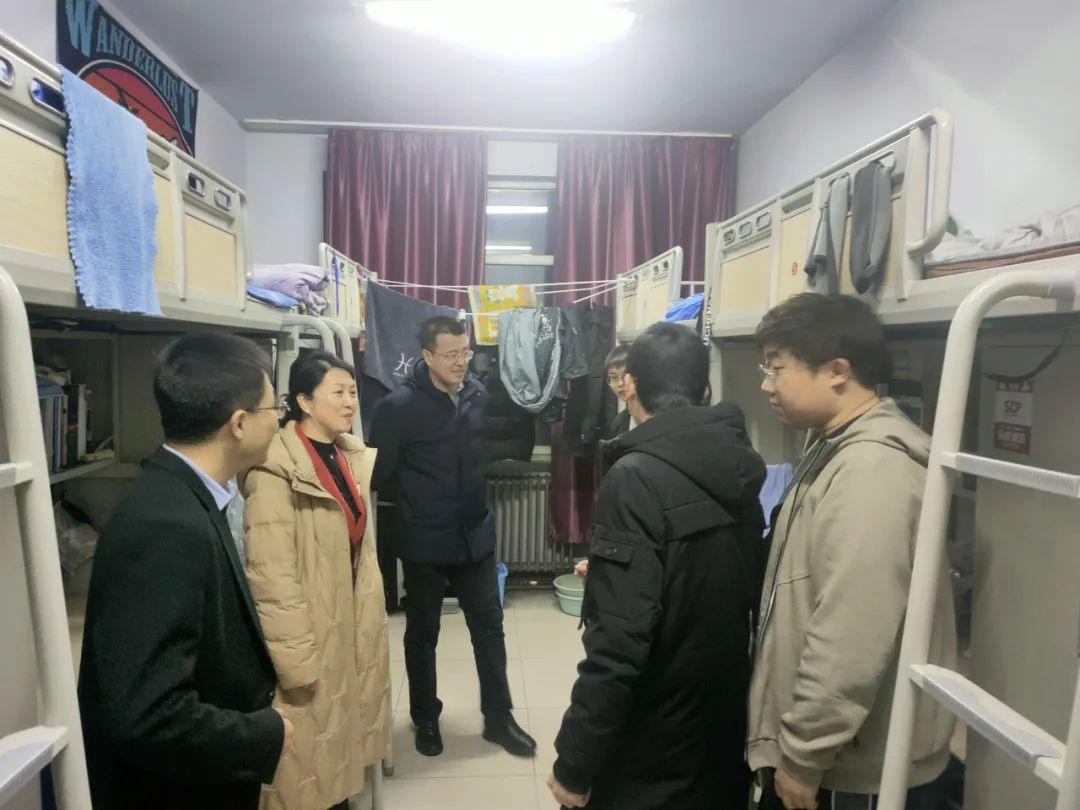 26日晚,院领导和老师们深入学生宿舍走访慰问,与同学们亲切交谈,及时了解学生们思想动态和新学期的学习规划、课业安排以及生活需求,并叮嘱大家要时刻注意宿舍用电安全等问题,要求大家保持良好的生活习惯,以饱满的精神状态迎接新学期的学习生活。