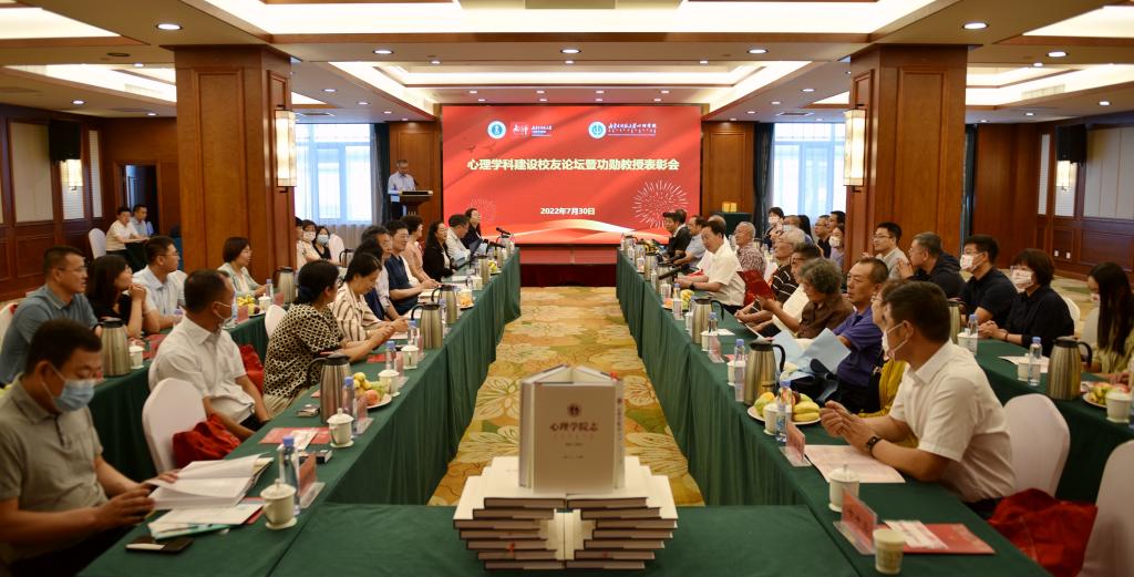 七秩弦歌励耘,心享桃李芬芳。7月30日,在喜迎70周年校庆之际,心理学科建设校友论坛暨功勋教授表彰会隆重召开,校党委副书记、校长李树林、学校相关部门负责同志、兄弟学院代表、beat365唯一官网入口老教授代表、杰出校友代表出席会议。会议由beat365唯一官网入口党委书记七十三主持。