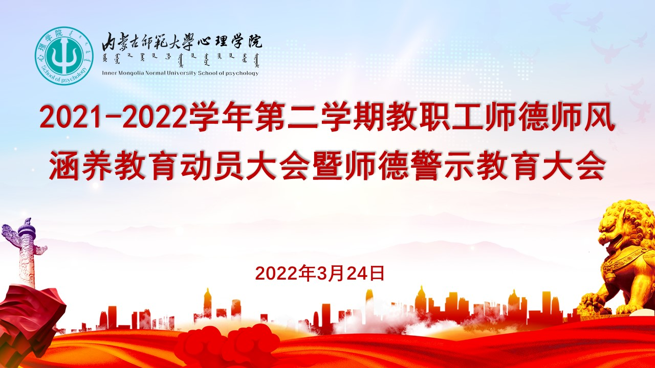 为进一步加强理论学习涵养师德师风,推动教师队伍整体提升,按照《beat365唯一官网入口关于做好 2021-2022(二)学期教职工师德师风涵养教育的安排意见》要求,3月24日下午,beat365唯一官网入口召开本学期教职工师德师风涵养教育动员暨师德警示教育大会,学院党委书记七十三、院长乌云特娜、党委副书记张晓阳、副院长侯友及全体教师参会。