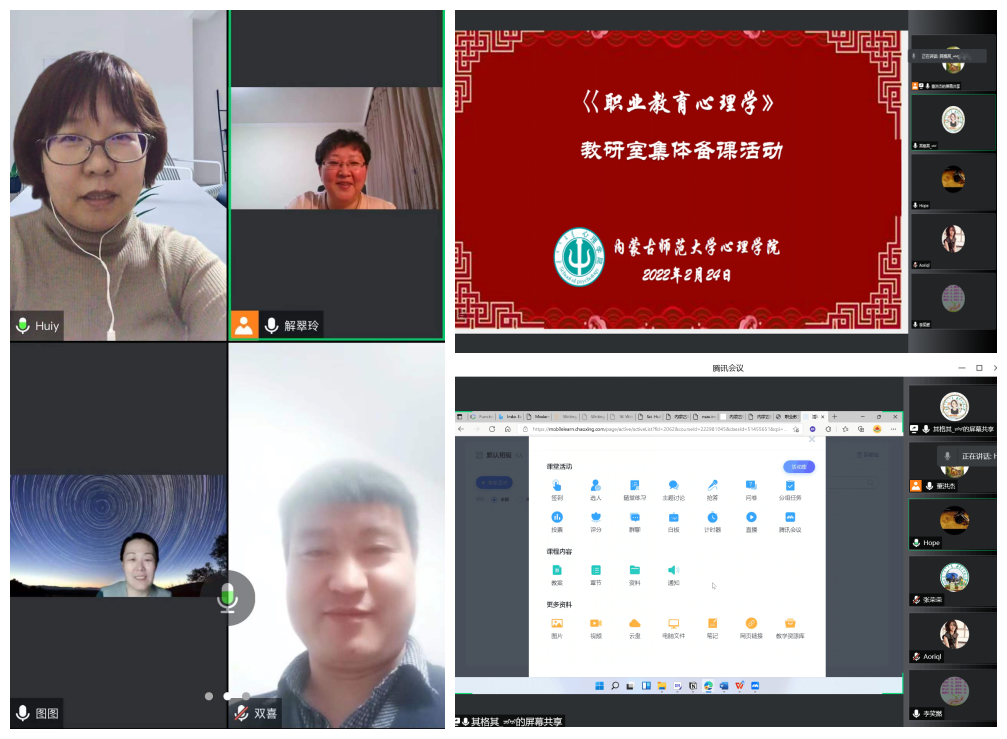 为适应新冠肺炎防控形势下的线上教学,beat365唯一官网入口各公共课教研室分别于2月22日与2月24日组织开展了《中学教育心理学》《职业教育心理学》线上集体备课活动,本学期授课教师均在线参加。