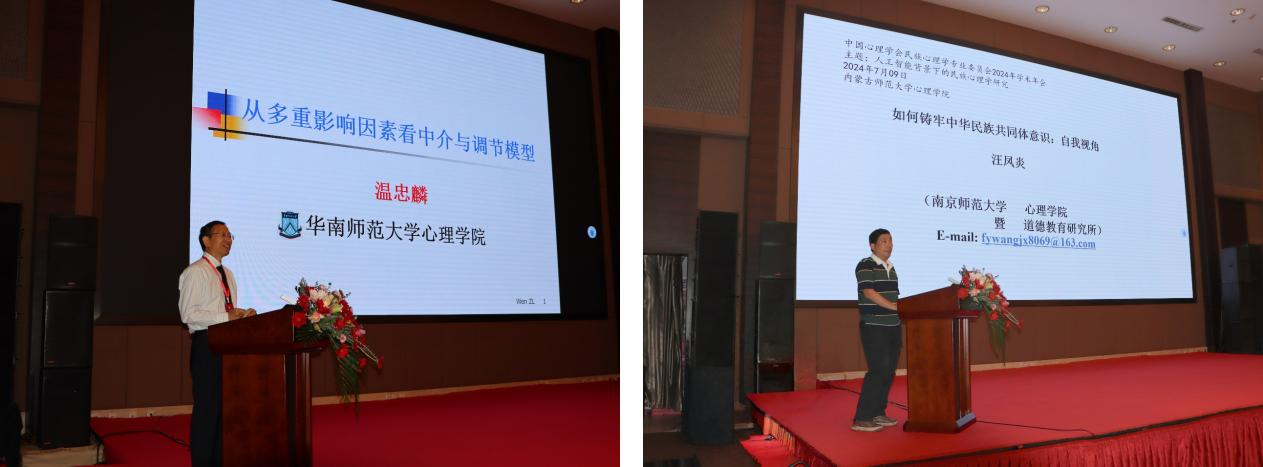 开幕式后,华南师范大学温忠麟教授、南京师范大学汪凤炎教授、上海交通大学李卫东教授、浙江大学周宵研究员和beat365唯一官网入口王欣瑜教授分别就《从多重影响因素看中介与调节模型》、《如何铸牢中华民族共同体意识:自我视角》、《AI 与脑机交互技术在抑郁中的探索研究》、《青少年创伤心理的变化特征及代际影响》和《深层文化结构视阈下的中国心理学本土化省思》等议题做了五场特邀报告,分享了民族心理学国内前沿科研成果和实践经验,为与会者奉献了一场高水平的饕餮盛宴。