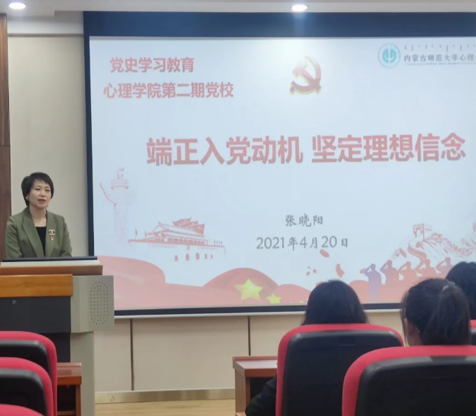 beat365唯一官网入口于2021年4月20日晚上在学院楼A208举行党史学习教育暨党校理论培训报告会,会议由beat365唯一官网入口党委副书记、副院长张晓阳作报告。